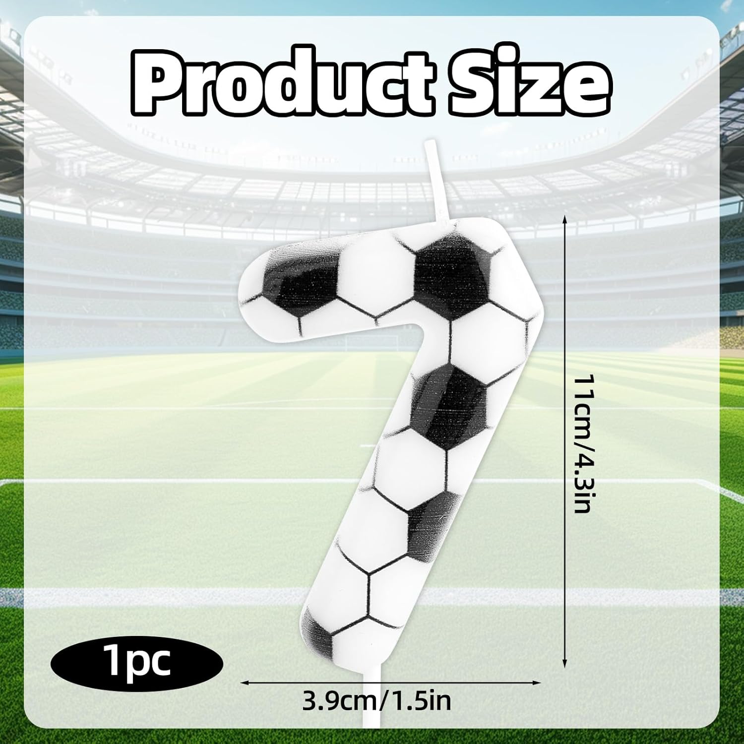 Specification: Color: black, white Material: paraffin wax, plastic Product Size: 11cm/4.3in Package details: 1 x soccer birthday candle Note: Due to manual measurement, the size and weight may have a certain error. Due to the difference between different monitors, there may be a slight color difference existed.